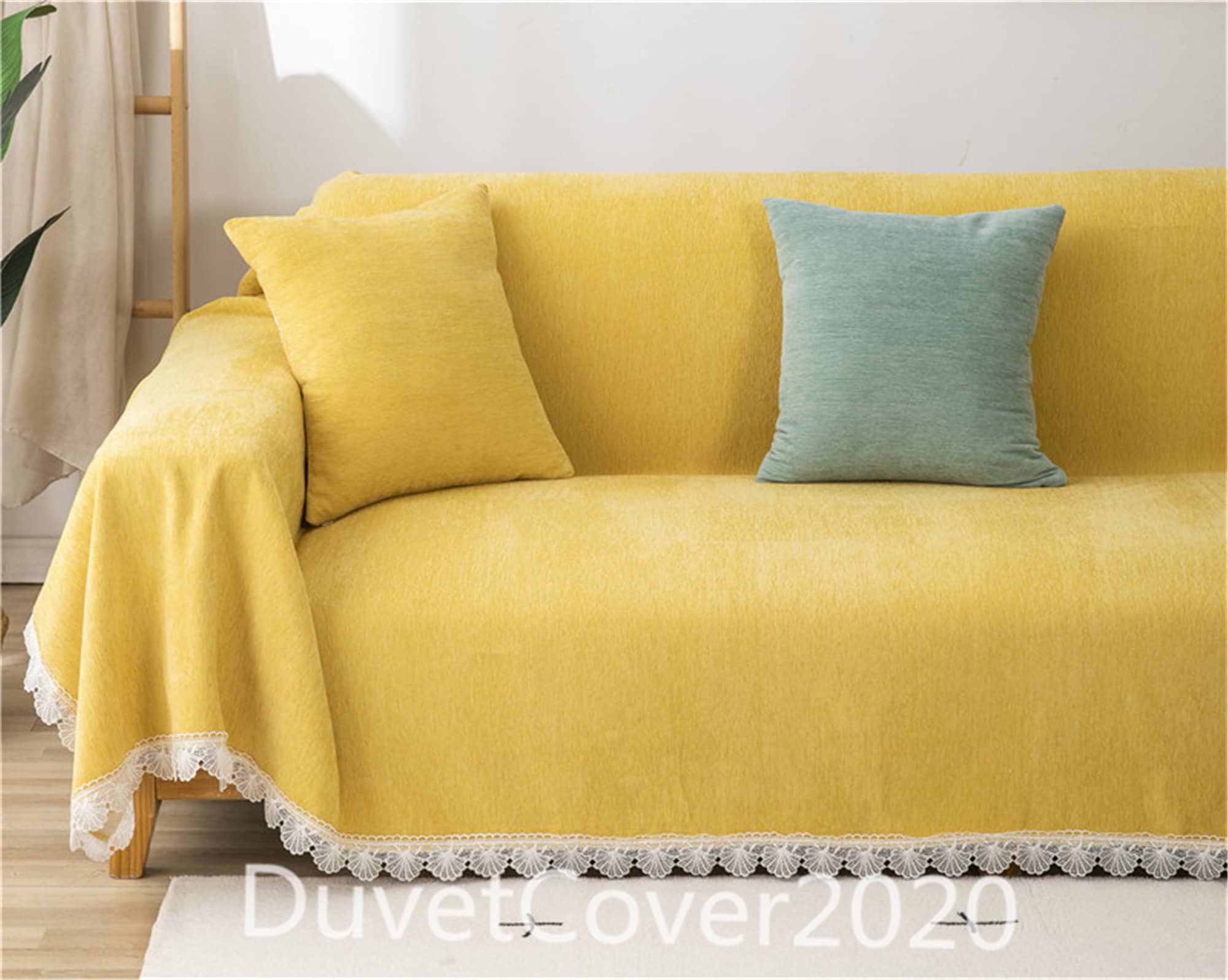 Solid Color Yellow Beige Couch Cover Chenille Cotton Sofa Etsy Australia