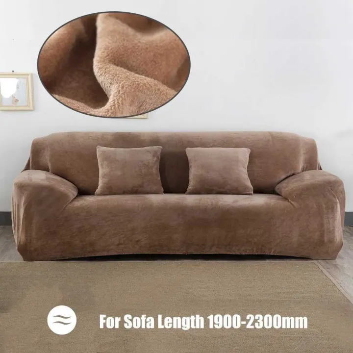 Winter Warm Sofa Cover Solid Color Plush Sofa Slipcover Full Cover All Inclusive Elastic Sofa Protector Washable Camel Lazada